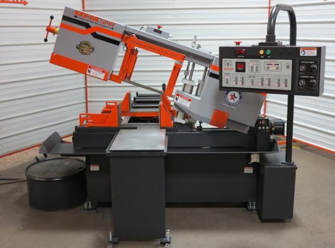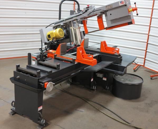 SPECIFICATIONS: BLADE ----------------------------------- 1" X 12' 10" X .035" CAPACITY -------------------------------- 12.75" W X 12.75" H DRIVE MOTOR ----------------------------- 3 HP STROKE BAR FEED SYSTEM WITH 4 INDEXES --- 0-24" DISCHARGE TABLE ------------------------- 24" - BOLTS TO SAW EQUIPPED WITH: ALL FUNCTION CONTROL-SWING AWAY CONSOLE VERTICAL ALIGNMENT BAR ON FEED CUT WATCHER SYSTEM TWO EACH HOLD DOWN FIXTURES FOR VISES COOLANT SYSTEM NOTES: SPECIFICATIONS SUBJECT TO VERIFICATION OPTIONAL FEATURES: 3rd Holding Vise on Feed: $3,595.00 Interlocking Vise Jaws: $1,495.00 Reduced Capacity Top Clamp - Main Vise (Capacity 10” W x 9” H): $2,195.00 Reduced Capacity Top Clamp - Feed Vise (Capacity 10” W x 9” H): $2,195.00 Light Clamping Pressure: $295.00 Spray Mist Lubrication - Flood/Mist Selector Switch: $1,395.00 Single-Phase Voltage: $795.00 5' x 18" Idle Non-Panned Roller Stock Table: $2,595.00 10' x 18" Idle Non-Panned Roller Stock Table: $3,995.00 DELIVERY: SUBJECT TO STOCK