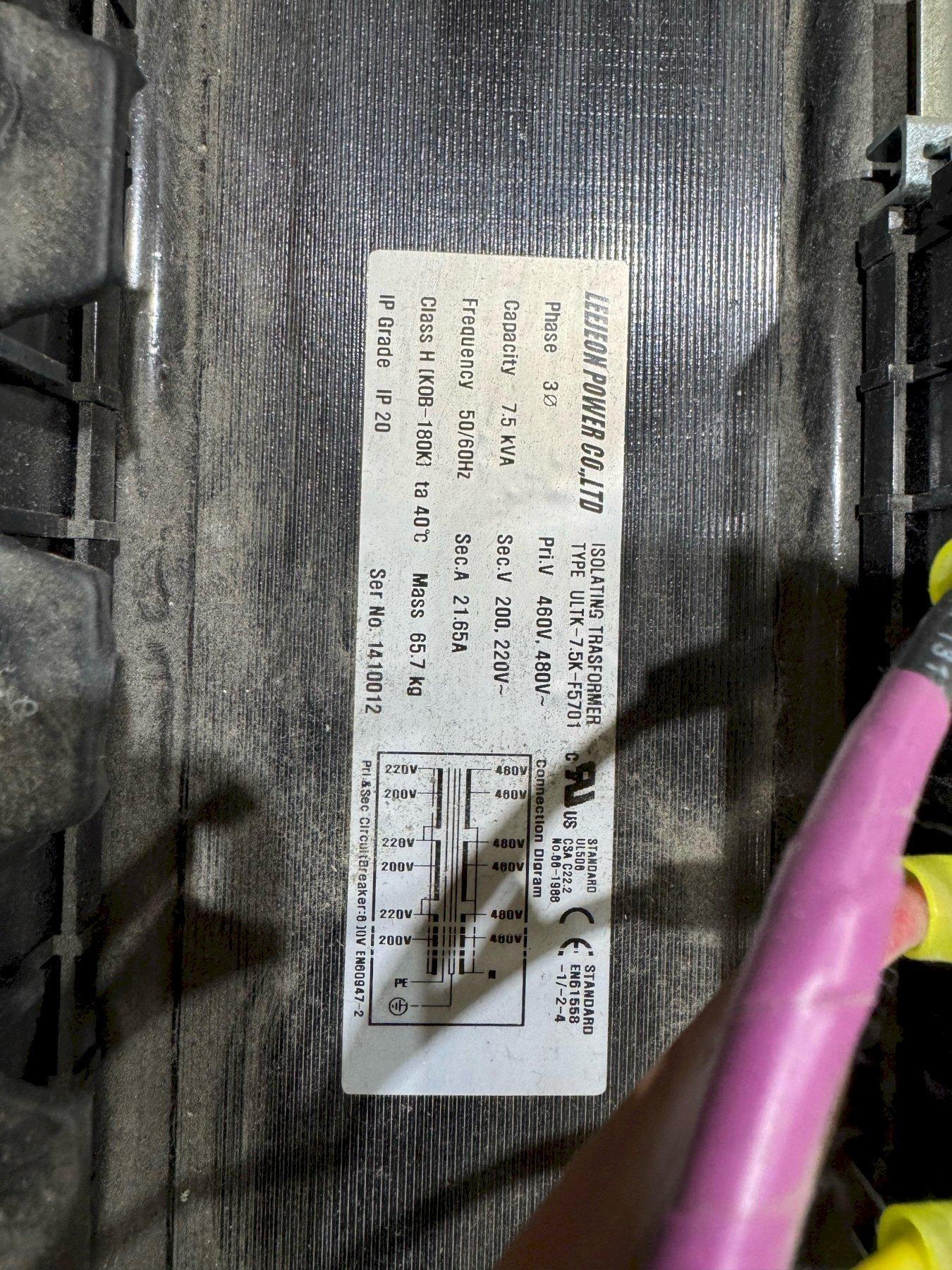 1 - NEW LEEJEON POWER 7.5 KVA 460/480 HIGH 200/220 SEC 3 PH TRANSFORMER