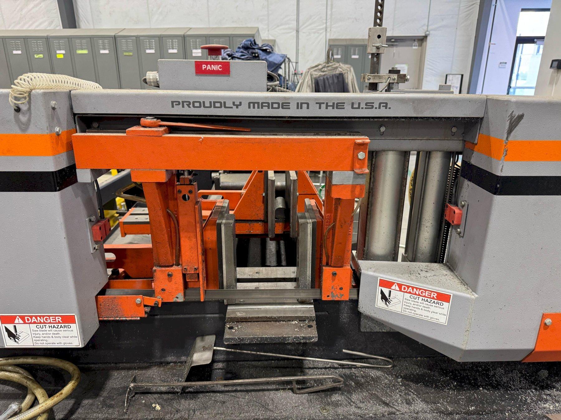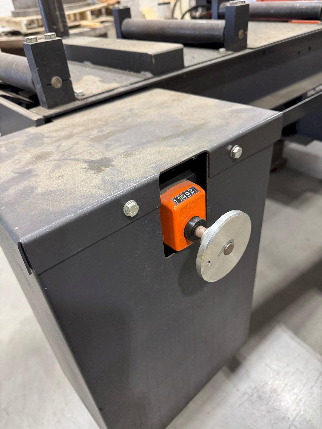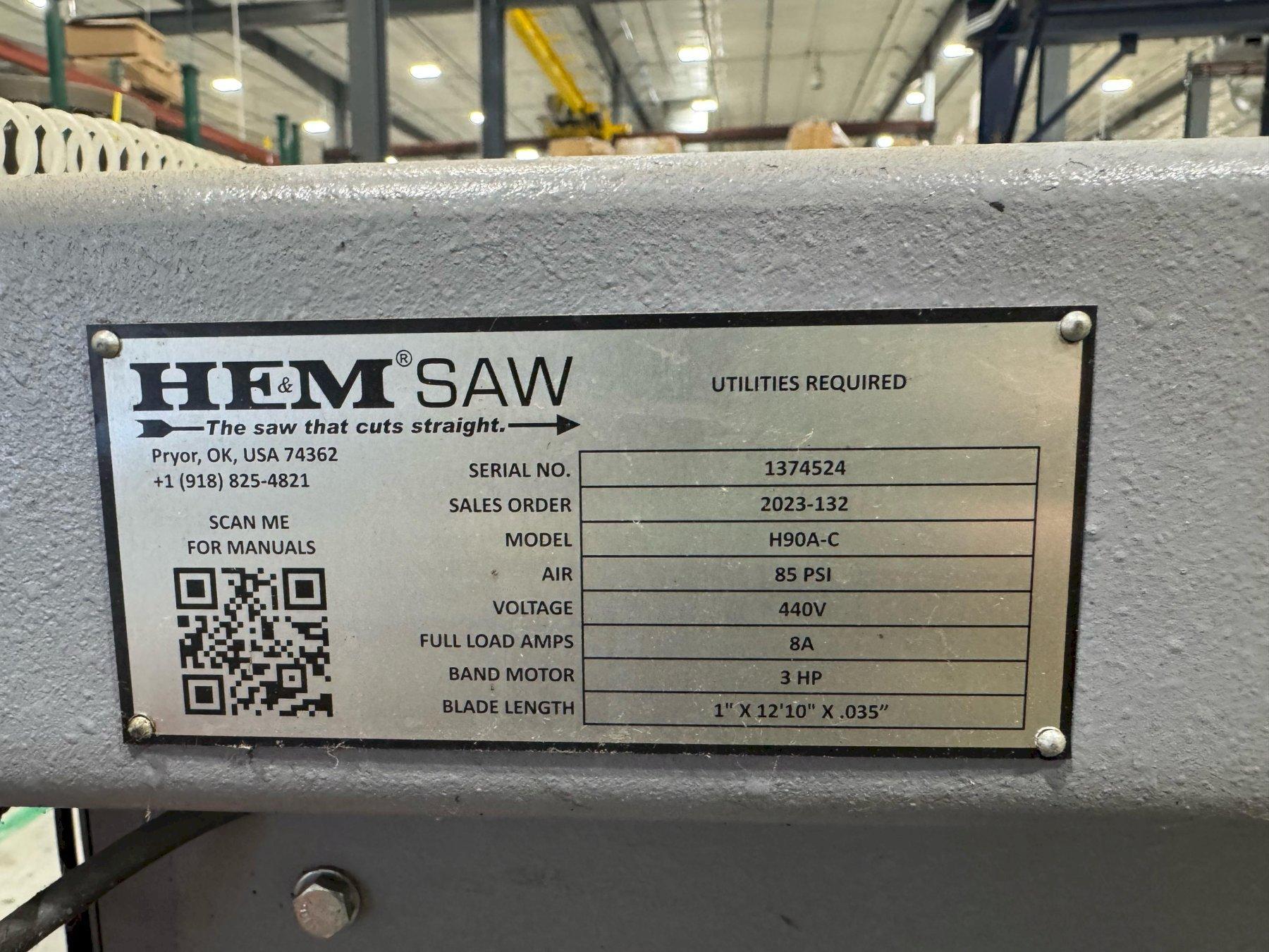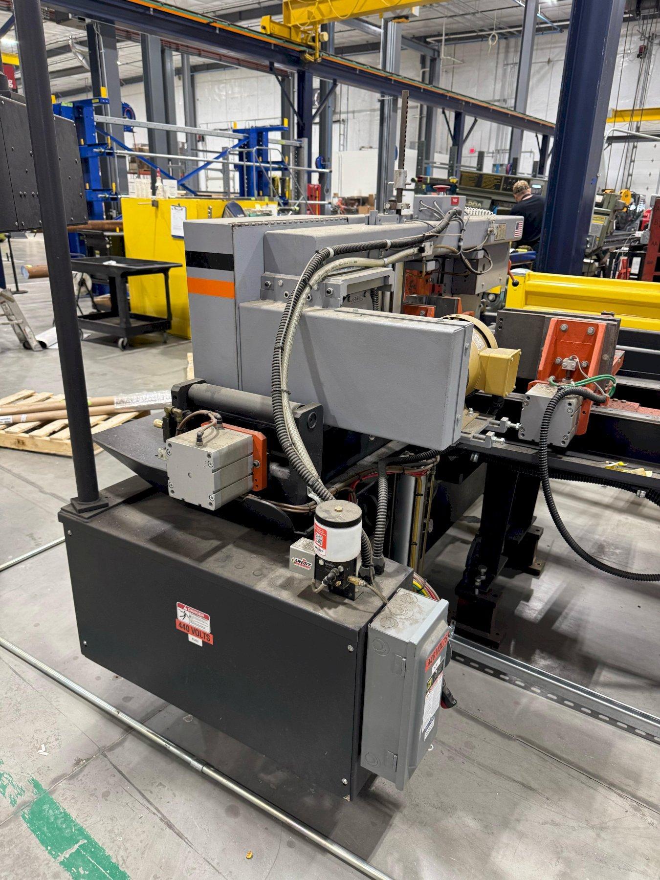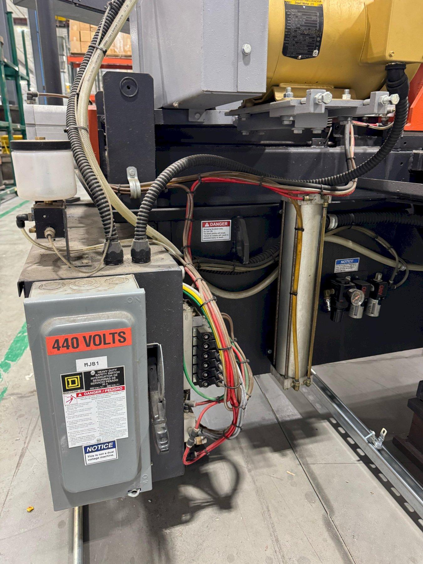 SPECIFICATIONS: BLADE ---------------------------------- 1 in X 12 ft10 in X .035 in CAPACITY ------------------------------- 12.75 in W X 12.75 in H DRIVE MOTOR ----------------------------- 3 HP STROKE BAR FEED SYSTEM W/MULTIPLE INDEXES 0-24 in DISCHARGE TABLE ------------------------- 24 in - BOLTS TO SAW NOTES: SPECIFICATIONS SUBJECT TO VERIFICATION DELIVERY: SUBJECT TO STOCK