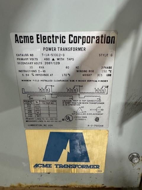 1 - PREOWNED ACME 30 KVA TRANSFORMER