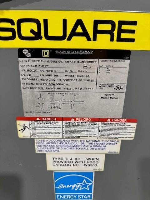 1 - PREOWNED SQUARE D 45 KVA TRANSFORMER