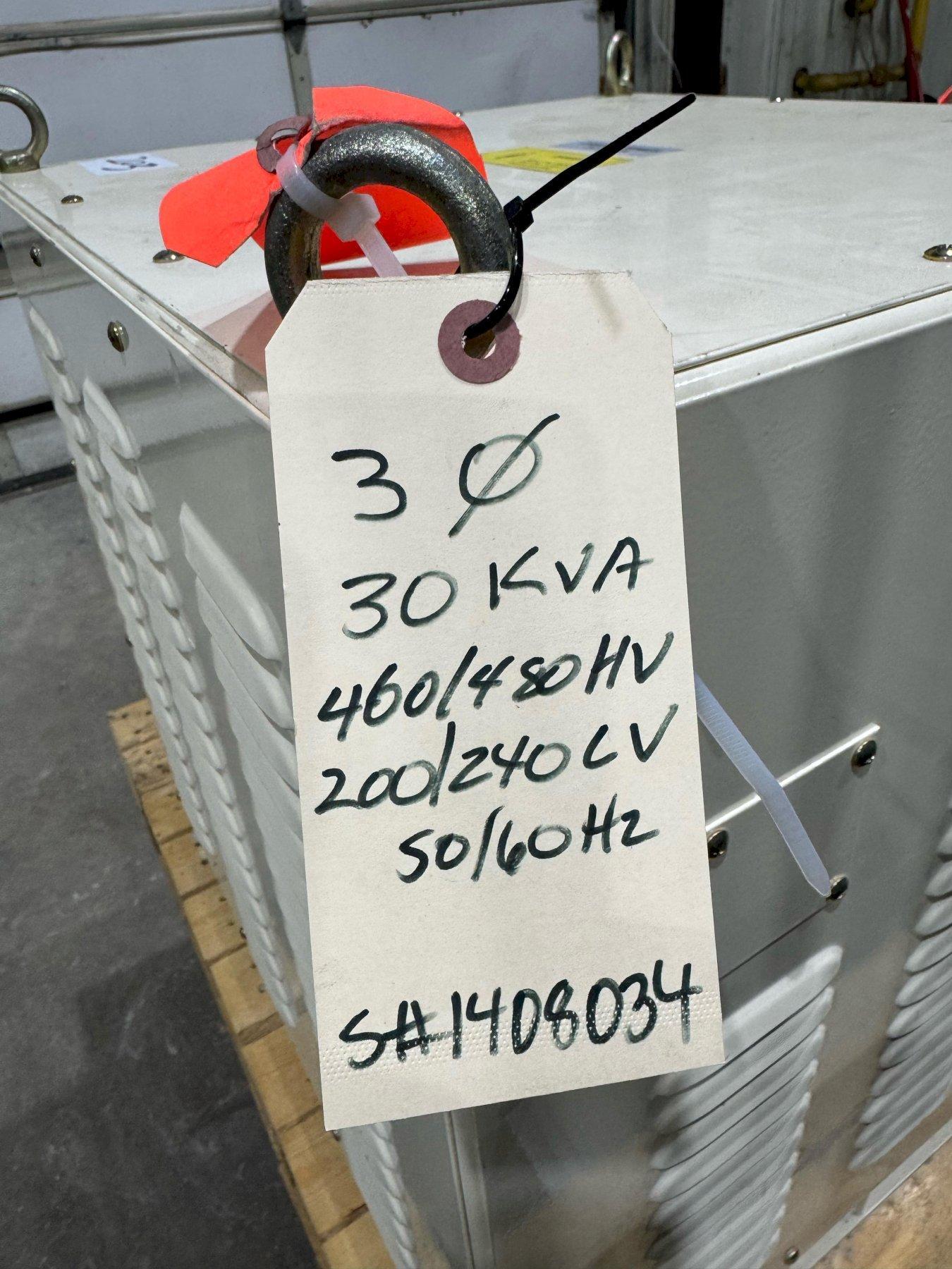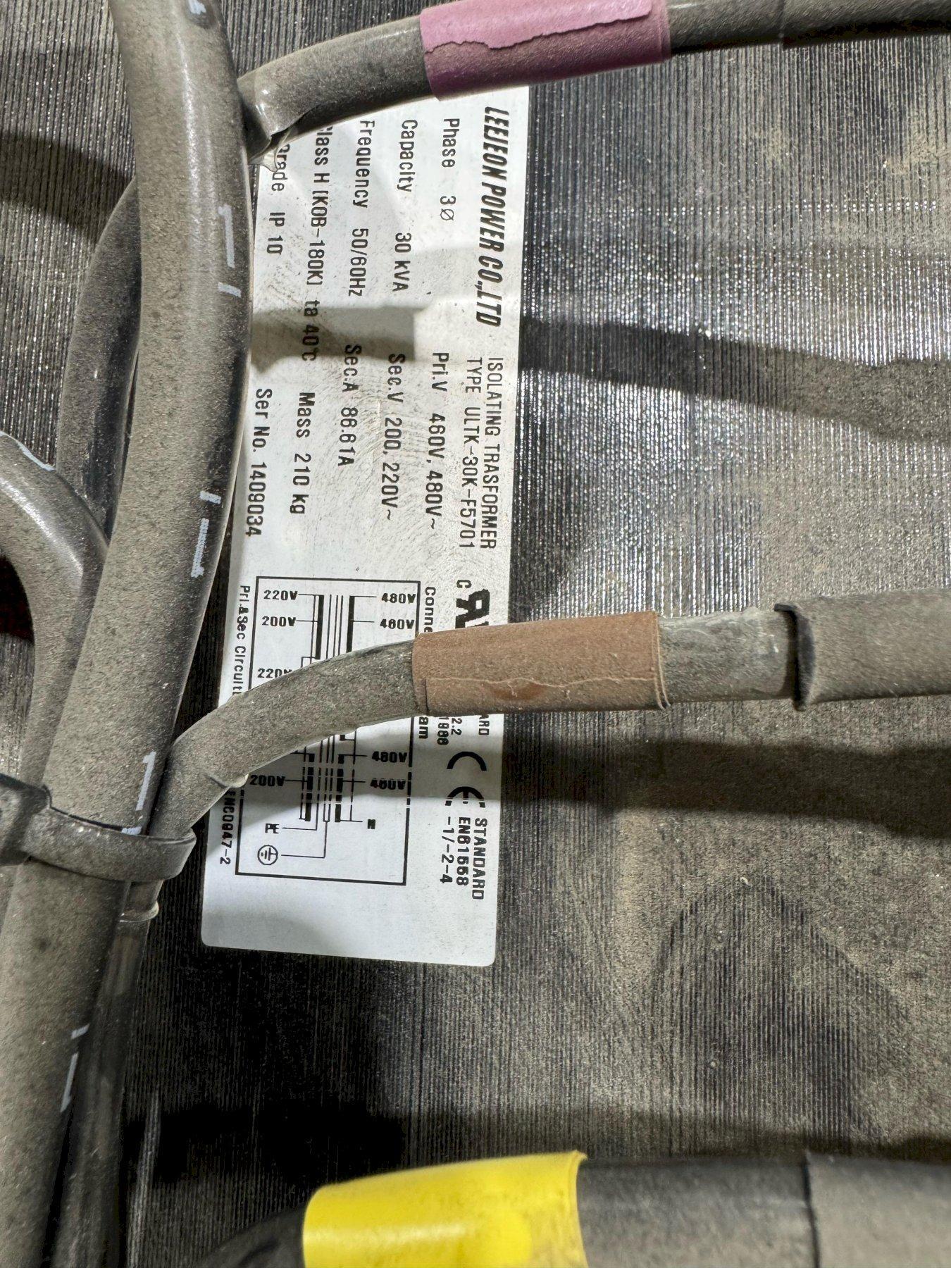 1 - PREOWNED LEEJEON ISOLATING TRANSFORMER, 30KVA, 460/480V PRIMARY, 200/220V SECONDARY, 3 PH