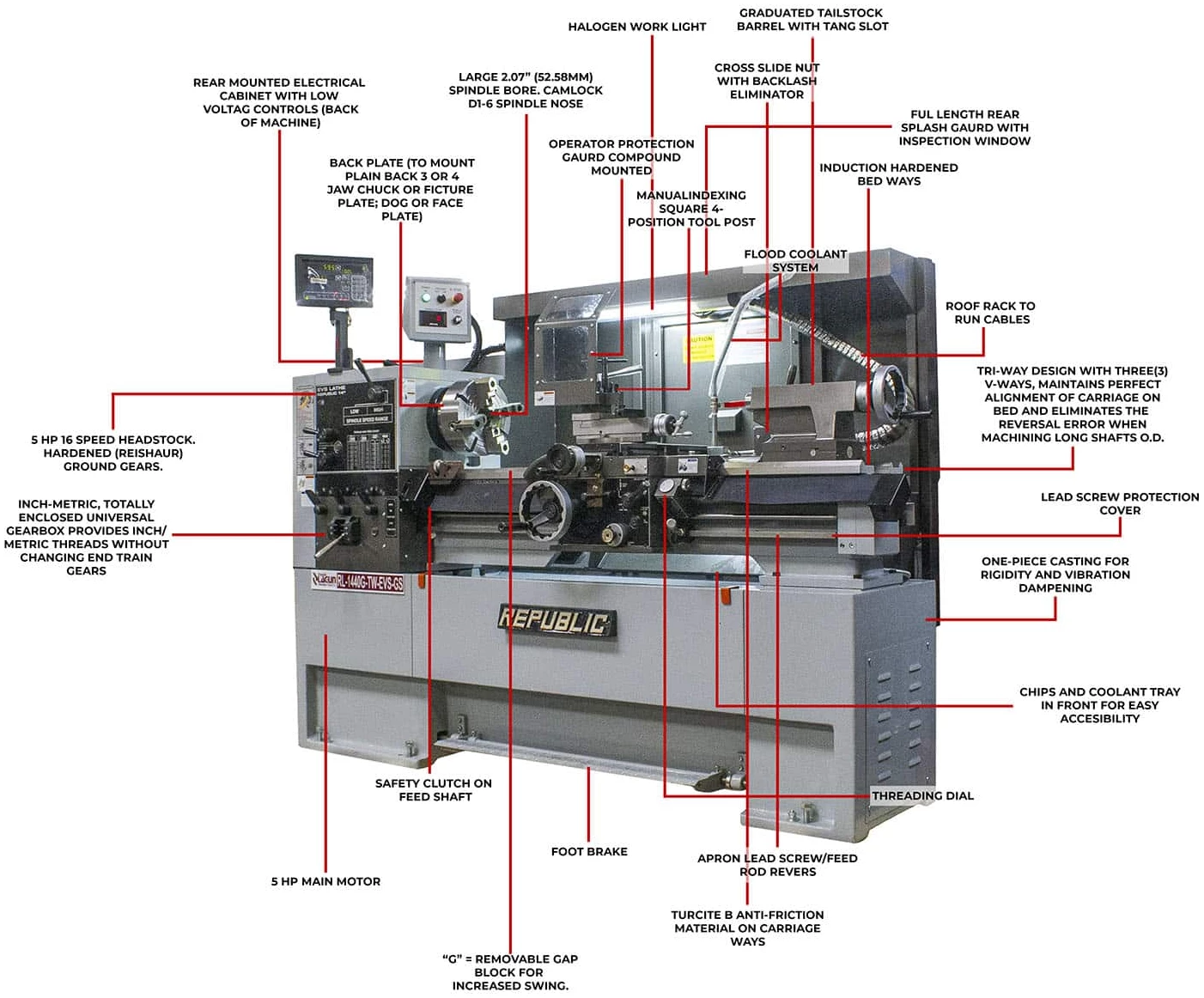 • INFINITELY VARIABLE SPINDLE SPEEDS 20~2,500 (OR 3,000) RPM IN TWO SPEED RANGES.